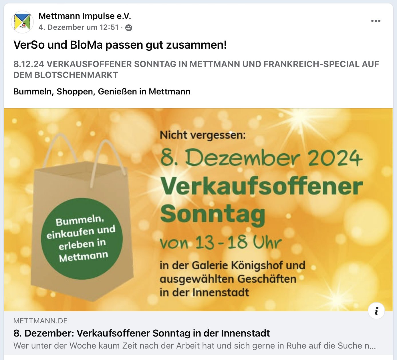 Mettmann Impulse e.V. bedankt sich bei den Sponsoren des Blotschenmarktes,