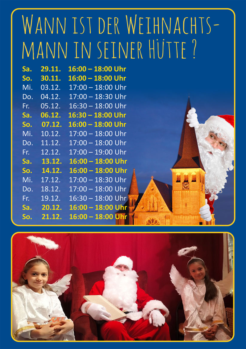 16:30-18 Uhr Die Weihnachtsmannhütte lädt Kinder zur Wunscherfüllung ein
